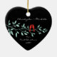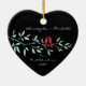 Our First Christmas Ornament features a stylish pair of red love birds sitting on a blue branch & set on a black background! Personalise with your information and date and you're all set to go! Wonderful dated keepsake gift for your first christmas and a great addition to you christmas ornament collection.