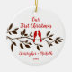 Our First Christmas Ornament features a stylish pair of red love birds sitting on a brown branch! Personalise with your information and date and you're all set to go! Wonderful dated keepsake gift for your first christmas and a great addition to you christmas ornament collection.