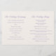 Cute bird couple in line art graphic drawing of open bird cage hanging from a blossoming spring tree with hearts. Fashionable modern chic wedding design part of the the bird cage romantic wedding stationary set. Pretty pastel shades purple and soft pink on a cream background colour. Edit this wedding programme with your own name, dates, ceremony wording, wedding party attendants and thanks . Simple yet elegant program simply replace sample text with your wedding information details and fold programs in half on delivery. Unique drawing and design by Sarah Trett.