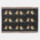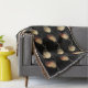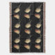 This artistic, decorative throw blanket features a repeating pattern of a pair of house finches perched on a branch. The male has red plumage on his head and breast. The female is tan and brown with stripes. They stand out beautifully against the deep black background.