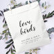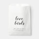 Simple, stylish "love birds" wedding day favour bag in a modern minimalist design style with a handwritten script typography in classic black and white written in an informal casual style. The text can easily be personalised for a unique one of a kind design for your special day. The perfect wedding favour for nature and bird lovers (wild bird seed not included)!