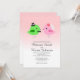 A cute and whimsical wedding invitation with a pink to white gradient background, featuring two love birds getting married.