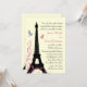 A tall, elegant and stately Eiffel Tower decorates this wedding invitation. The pretty shades of pink and off white, and the fancy French script accent the romance of your Parisian themed evening. This invitation is shown on the basic paper; however, I recommend the weight and texture of the linen paper. This invitation is part of a full wedding line; however, if additional items are required just let us know.