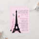 Subtle shades of pink, fancy French script and a beautiful silhouette of the Eiffel Tower accent the romance of your Parisian themed event with this invitation It is part of the full wedding line Love Birds (pink).