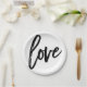 LOVE Black White Modern Typography Wedding Party Paper Plate