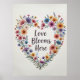 Celebrate the beauty of love and nature with this charming "Love Blooms Here" floral heart art print. Delicately arranged wildflowers form a heart-shaped design, symbolising how love flourishes when nurtured. The elegant script adds a warm and inviting touch, making this print perfect for romantic home decor, wedding gifts, or inspirational wall art.