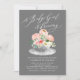 Stylish Baby girl is brewing bridal tea design featuring a light grey tea cup filled with a bouquet of pink peonies watercolor flowers set on a dark grey back. Flip our design over to view a coordinating floral back for an extra special touch. Visit our shop to view our tea collection.