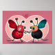 Two Valentine Love Bugs holding hands inside of a heart.