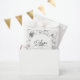Elegant handwritten script text and brush stroke accents are used to create the pieces of this beautiful, modern wedding suite. The coordinating favour bag shown here in black on white, also features a hand drawn floral pattern for an eye-catching background. Easily add your own message, names and wedding date using the provided template. Search ID940 to see other pieces and colour choices for this set.