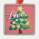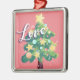 Love Caption Carton Christmas Tree Pink Metal Ornament