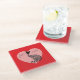 Stylish Black Cat with Green Eyes in Filigree / Quilling style on a Pink heart with a red background with the words "Love Cats" glass drinks coaster.