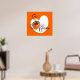 Square poster with the word coffee and a cute orange vector illustration coffee cup - the handle is used as the letter "c" and the cup is used as the letter "o" on a white heart on an orange background with brown border -www.vecto2000.com - a cool, trendy & stylish poster for coffee shops and coffee lovers. Background colour and border are customisable.