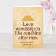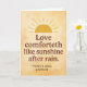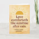 This tender card draws from the timeless beauty of Venus and Adonis, offering a message of love that soothes and uplifts. The front features the quote, “Love comforteth like sunshine after rain,” set against a soft, golden watercolor sky—evoking warmth, renewal, and the quiet joy of being truly seen. Inside, the message deepens with a personal reflection: “Our love has comforted me over the years. Thank you for loving me. Thank you for receiving my love.” A gentle tribute to enduring connection and mutual care