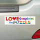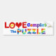 Inspirational Autism quote, Love Completes The Puzzle, with colourful Autism puzzle pieces and a beautiful butterfly to support Autistic children and their families.