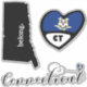 A sheet of 3 different stickers, featuring Connecticut designs.