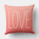 Stylish and chic square accent pillow design features a shades of blush, coral pink, and watermelon with "LOVE" text in white.