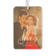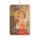 Add some romance to your commute with this car air freshener, featuring the word "love" in beautiful calligraphy script, which can be customised with your own photo and names. Also makes a charming gift, whether from one partner to another, or to celebrate a couple's engagement, wedding or anniversary. The position of the word "love" as well as the font for the names can also be edited in the design tool if so wished.
