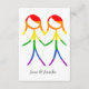 This enclosure card features a beautiful and simple design to include with your wedding invitations. The graphic at the top depicts two women, in the form of elegant stick figures, holding hands. The figures are coloured in a beautiful rainbow, symbolising love and diversity. This card is a wonderful way to bring a cohesive and meaningful touch to your stationery while providing guests with important details like directions, accommodations, or registry information.