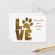 Love Dog Paw Print Personalised Message, Quote or Announcement Postcard