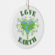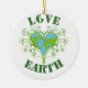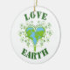 Earth Day custom ornament featuring the planet earth in a heart and swirls.