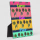 This artwork features a horizontal arrangement of three colourful bands, each adorned with repeating patterns of stylised flowers. The prominent words "Love," "Eat," and "Play" are boldly displayed across the bands, creating a joyful and inviting atmosphere.
