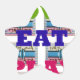 "Love Eat Play": The primary focus of the design, promoting a balanced and enjoyable lifestyle. The use of different colours for each word highlights their individual importance and adds visual interest.