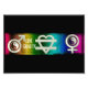 A textured rainbow background with the male and female signs, which include the ying-yang in the centre of the signs. In the centre of this design is a heart with the equal sign. In a white font is the text, Love Equality.