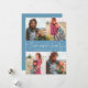 Modern and elegant Valentine's Day photo template card featuring 4 pictures with a hand written script text that says "Love makes a family" with hearts. You can add another picture and a message on the back of the card. Denim blue.