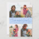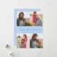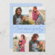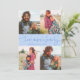 Modern and elegant Valentine's Day photo template card featuring 4 pictures with a hand written script text that says "Love makes a family" with hearts. You can add another picture and a message on the back of the card. Icy blue.