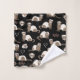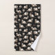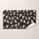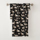Hand-drawn ferrets, xoxo and hearts pattern bath towel set , black background.