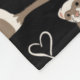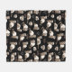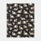Hand-drawn ferrets, xoxo and hearts pattern fleece blanket, black background.