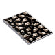 Hand-drawn ferrets, xoxo and hearts pattern notebook, black background.