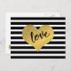 Customised "Love" Postcard: Chic Gold Faux Metallic Heart Design/Whimsical "Love" Typography/Stylish Black And White Stripes Background/Can e Personalised With Your Own Special Message