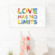 This design features the phrase "Love Has No Limits" formed in colourful rainbow colours.