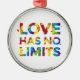 This design features the phrase "Love Has No Limits" formed in colourful rainbow colours.