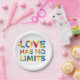 This design features the phrase "Love Has No Limits" formed in colorful rainbow colors.