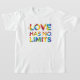 This design features the phrase "Love Has No Limits" formed in colorful rainbow colors.