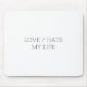 Simple design with “LOVE / HATE MY LIFE” text printed in black - because sometimes we absolutely love our lives and other times it’s the opposite.