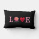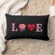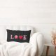 Love Heart and Rose Flower on Black Lumbar Cushion