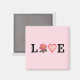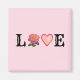 Love heart and pink rose flower on pink background Square Magnet. May your love bloom like a beautiful flower!