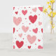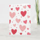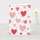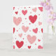 This design shows a white background filled with hearts in many sizes, scattered all over like confetti. The hearts are mostly red and pink, from light blush to deep red, and they overlap here and there to keep the layout feeling lively. Some hearts are solid, while others have small patterns inside, like tiny red hearts, white dots, and little star shapes. The mix of plain and patterned hearts makes the card feel sweet and cheerful, like it’s celebrating love and friendship 💘. There isn’t any character or scene—just a simple field of hearts that keeps the focus on affection. There’s no visible text on the card, so the design speaks through color and shape alone ❤️.