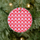 Love Heart Red Pink and White Check Pattern Ceramic Ornament