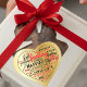 Word cloud heart shaped sticker design featuring repeating words in different fonts in red and black on a gold background.
