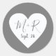 love heart with script initials wed grey classic round sticker