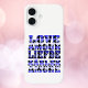 Are you looking for a love theme phone case? You'll love this phone case that says love in different foreign languages with hearts in various shades of blue.