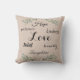 Love, hope, patience, laugher, fun . . . Life pillow. Available in different sizes.