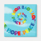 Magnet with a fun spiral design of 'Love, Hope, Peace, Joy' in rainbow colors.