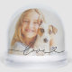 This sweet snow globe features your favourite photo with "Love" in delicate black script and a heart accent overlaid on the image. The back displays a second photo for a charming two-sided keepsake. Versatile enough for couples, families, pet lovers, or anyone who wants to showcase a cherished memory. All photos are fully customisable.