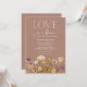 Topped with the romantic phrase “Love is in Bloom” in elegant white calligraphy, it’s the perfect invite for a boho garden bridal shower in fall, summer, or spring.