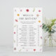 Make your event unforgettable with the Personalised Love in Bloom Bridal Shower Would She Rather Game. Perfect for a love is blooming bridal shower theme or love in bloom bridal shower theme, it complements spring bridal shower themes, garden party bridal shower ideas, and a flower bridal shower theme. Ideal for a bridal shower tea party, tea party bridal shower ideas, or a wildflower bridal shower theme. Fun and stylish for any celebration!